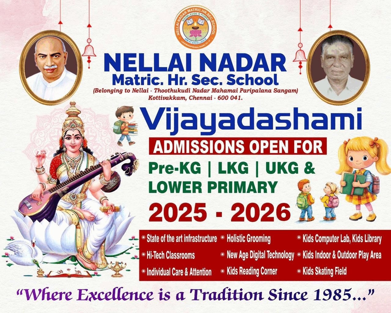 We at Nellai Nadar Matric Hr. Sec. School believe that every child is the manifestation of God's creativity and brilliance. Hence, we never move away from our social commitments to impart knowledge to the needy children. Year after year, we produce excellent results without discriminating brilliant, of below average students while giving admission. We offer quality education. catering to the needs of the students of different levels of the society